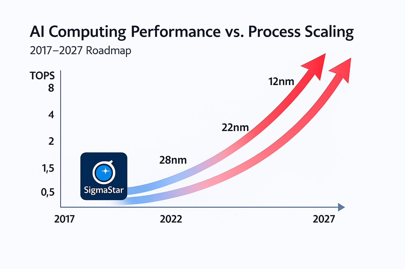 SigmaStarのチップのサイズは、28㎚ から 12㎚ へと進化し、性能と電力効率が向上しています。
