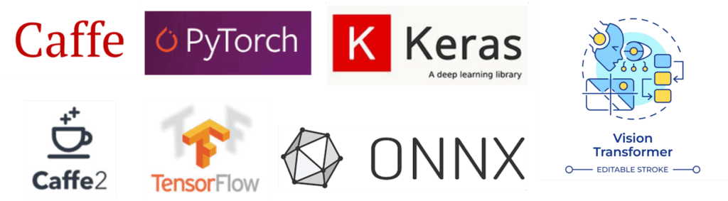 Caffe、PyTorch、Keras、Caffe2、TensorFlow、ONNXなど、主要なディープラーニングライブラリとフレームワークを幅広くサポートしています。