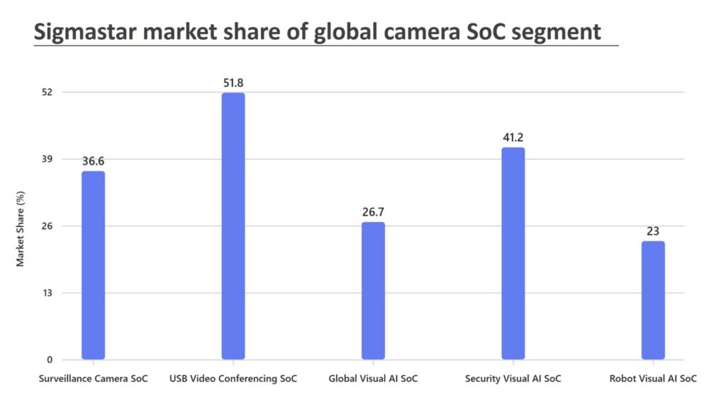 ・SigmaStar製のグローバル・ビジュアル AI SoCは、出荷量ベースで世界最大の市場シェアを誇ります( 26.7%) 。