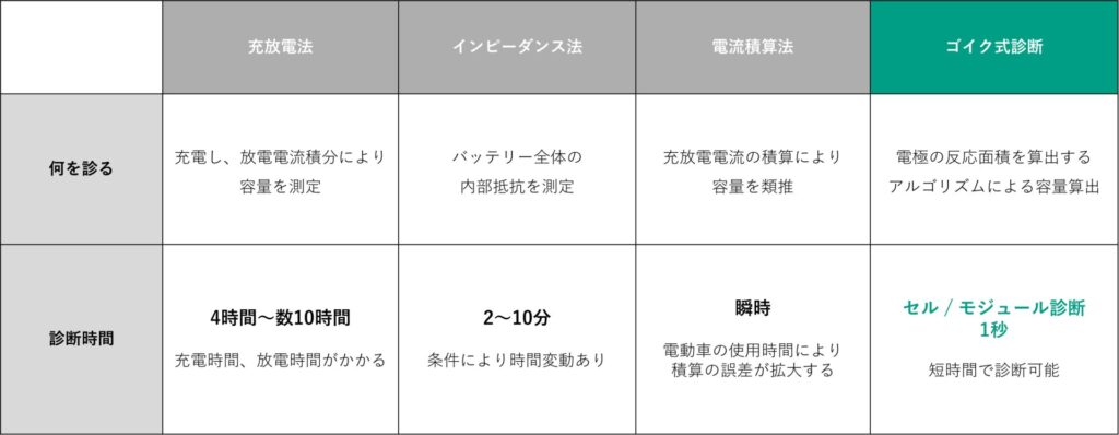 ※セル/モジュール診断:バッテリーを構成するセル単位やモジュール単位で劣化状態を測定する診断方法です。