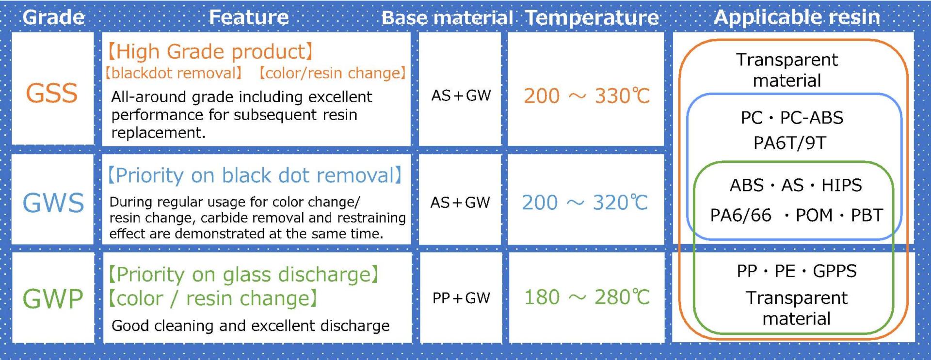 ■ Purging Compound for Plastic Molding Machines with New Materials