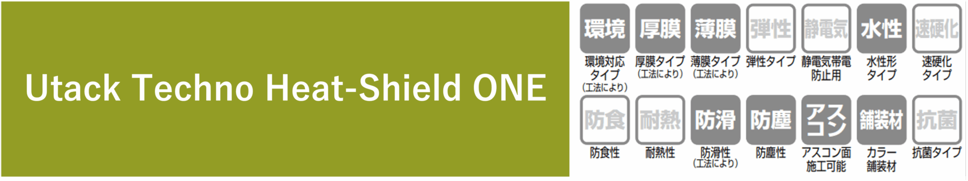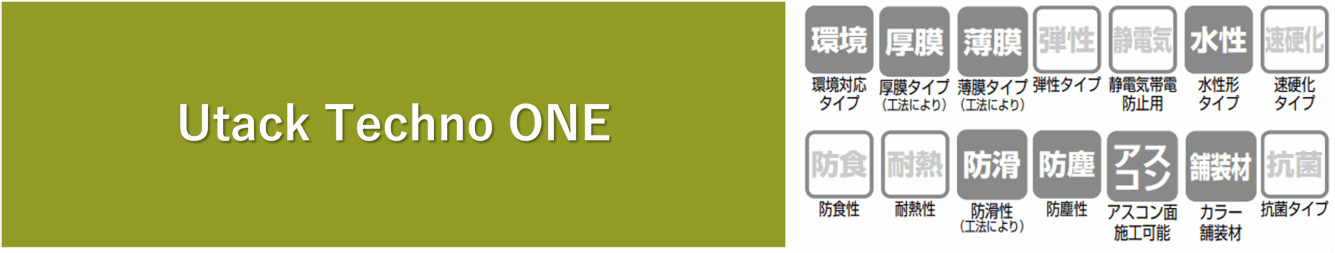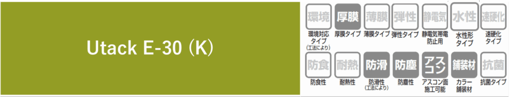 2. High Performance: Provides workability, weather resistance, abrasion resistance, and adhesion equivalent to that of Utack Techno ONE.