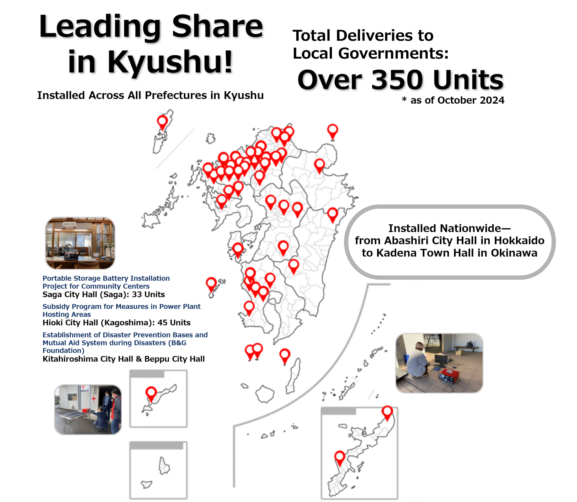 Over 350 units have been delivered to local governments, primarily municipal offices in the Kyushu region (as of October 2024).
